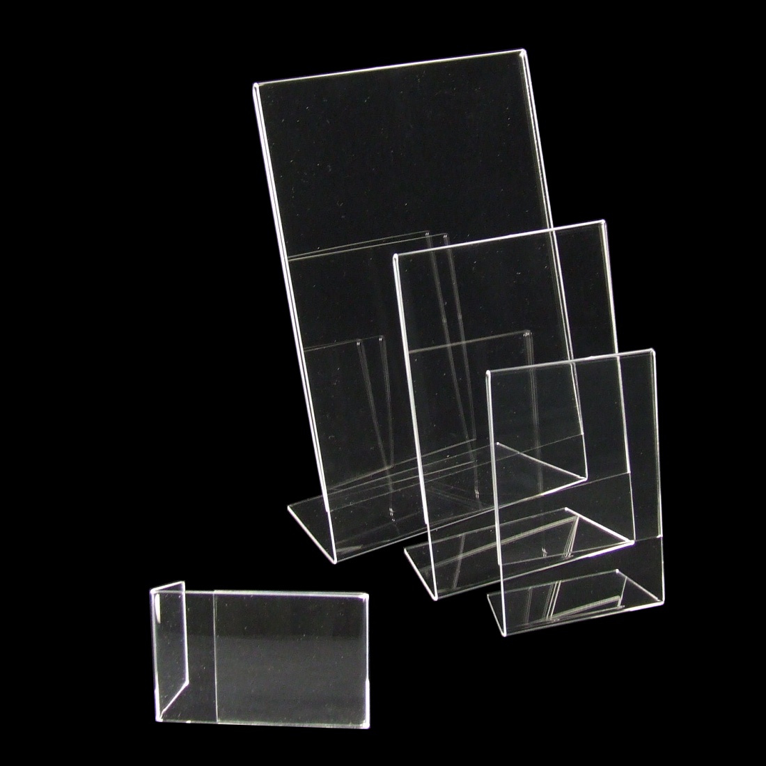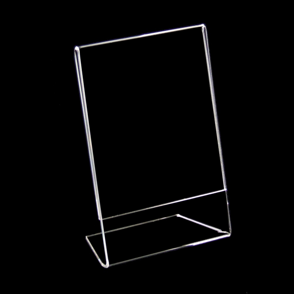 Beschreibung : L-Ständer, DIN A7 (74x105mm), Hochformat, polierte Kanten, durch Spezialfuß auch quer verwendbar